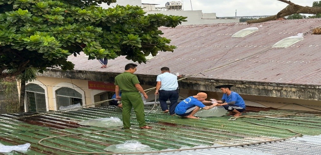 Các tổ nghiệp vụ tiến hành kiểm tra toàn bộ khu vực nhà ở, mái tôn, cửa sổ, khu sinh hoạt, khu làm việc; kịp thời gia cố, chằng chống, sửa chữa những vị trí hư hỏng, xuống cấp; kiểm tra hệ thống điện, cắt tỉa cây xanh và khắc phục các điểm thấm dột, bảo đảm an toàn khi có gió bão lớn.