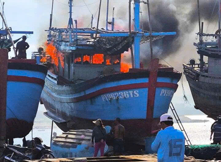 Vụ cháy tàu PY-96236-TS đang neo đậu tại Cảng cá Đông Tác