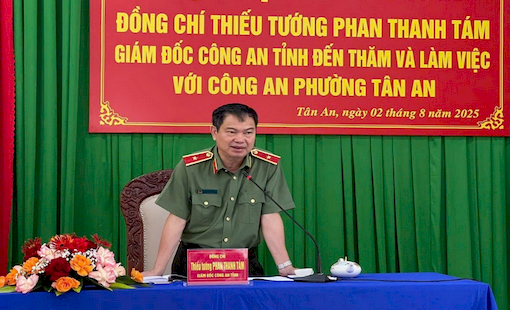 Đồng chí Thiếu tướng Phan Thanh Tám – Giám đốc Công an tỉnh chỉ đạo Công an phường Tân An các mặt công tác
