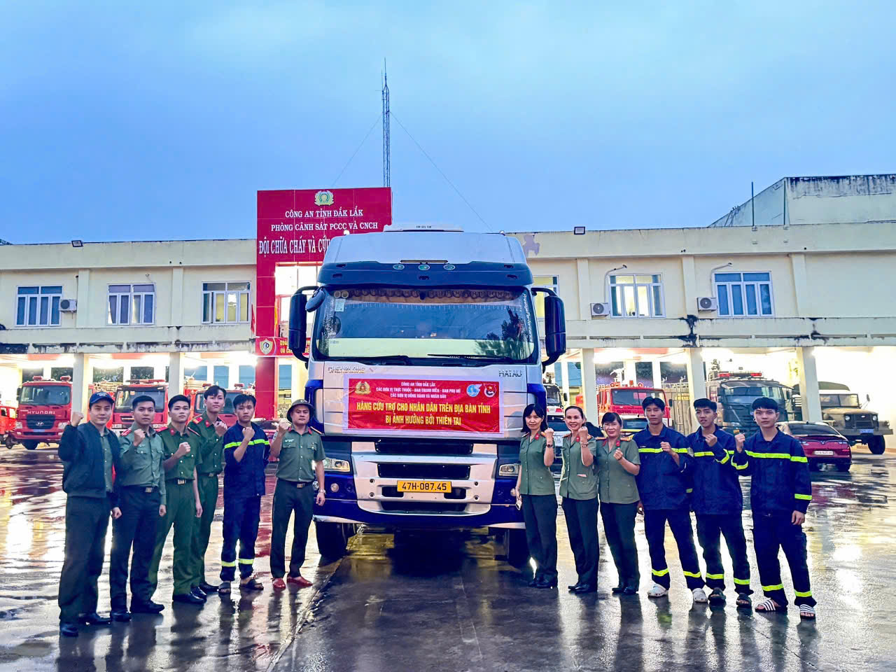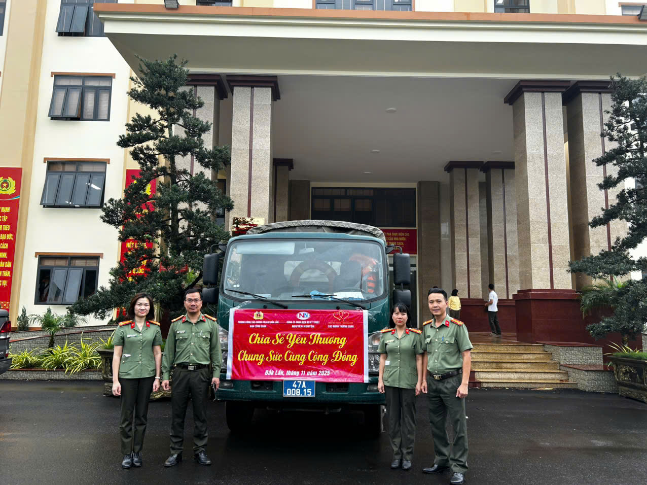 Bên cạnh các lực lượng tuyến đầu giúp nhân dân cứu nạn, cứu hộ, các đơn thuộc Công an tỉnh Đắk Lắk cũng đã phát động cán bộ, chiến sĩ và vận động nhân dân tại các xã, phường quyên góp tiền, gạo, mì tôm, nước suối, áo ấm… để ủng hộ đồng bào vùng lũ. Tại trụ sở Công an tỉnh, từng bao gạo, thùng mì, nước, kem đánh răng, bánh mì…sau khi được tiếp nhận, đều được phân loại, đóng gói cẩn thận và vận chuyển ngay lên các phương tiện vận tải để di duyển đến các vùng ngập lũ. Hàng trăm chiến sĩ vừa trực chiến, vừa tham gia tiếp nhận, phân loại, bốc dỡ hàng hóa để bảo đảm mọi nguồn hỗ trợ được chuyển đi nhanh chóng, kịp thời. Đặc biệt, tại Công an phường Tân An, cán bộ, chiến sĩ cùng cán bộ, đảng viên và người dân gói hơn 1.500 bánh chưng, bánh tét gửi đến các khu vực đang bị cô lập, đây là nguồn tiếp sức quan trọng kịp thời hỗ trợ người dân trong những ngày mưa lạnh kéo dài.