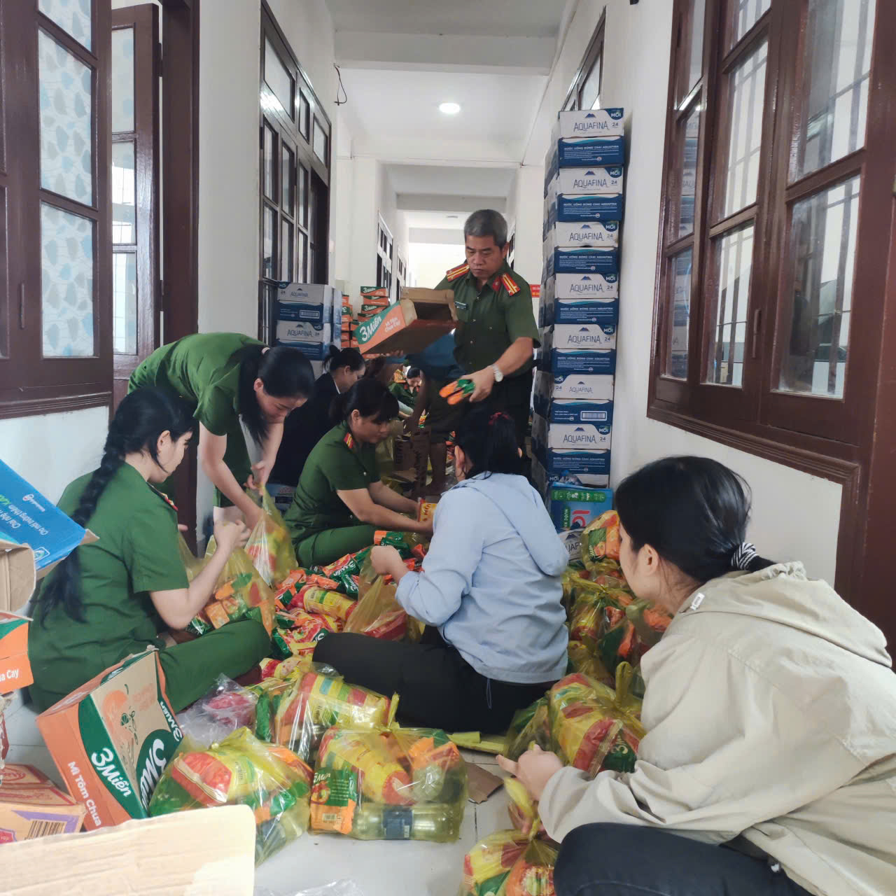 Tính đến sáng ngày 21/11, hơn 35 tấn hàng hoá, nhu yếu phẩm do Công an tỉnh và nhân dân quyên góp đã được đóng gói và vận chuyển đến các điểm ngập lụt để hỗ trợ bà con. Tất cả đều hối hả, không ngừng nghỉ, mong muốn được giúp đỡ, sẻ chia, được góp một phần công sức nhỏ bé của mình hướng đồng bào vùng lũ.