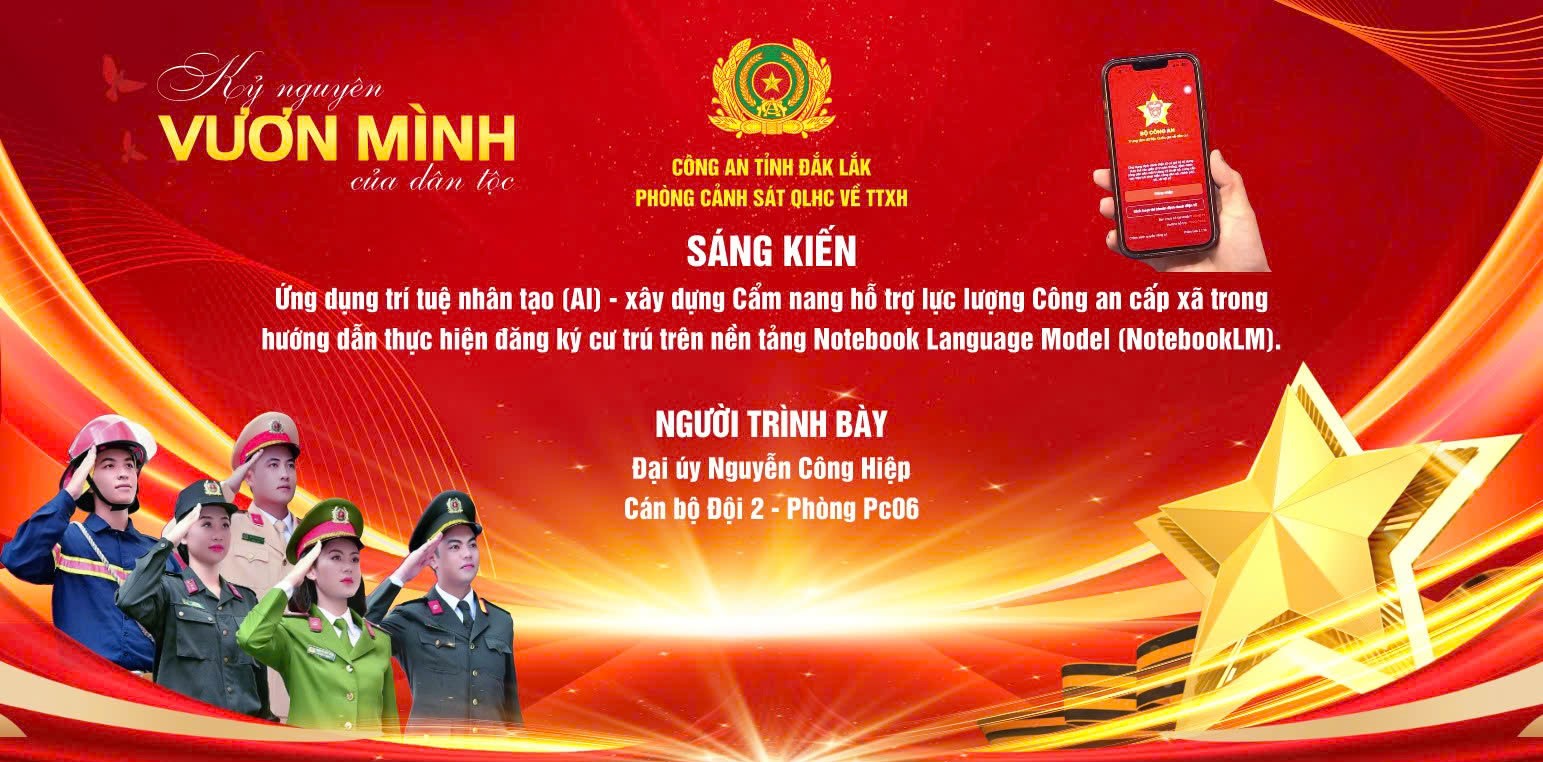 Thực hiện chủ trương đẩy mạnh ứng dụng khoa học công nghệ trong cải cách hành chính và cụ thể hóa Nghị quyết số 57-NQ/TW ngày 22/12/2024 của Bộ Chính trị về đột phá phát triển khoa học, công nghệ, đổi mới sáng tạo và chuyển đổi số quốc gia, phát triển bền vững đất nước trong thời kỳ mới, Công an tỉnh Đắk Lắk đã nghiên cứu hai sáng kiến đột phá ứng dụng trí tuệ nhân tạo (AI), gồm: Cẩm nang hỗ trợ Công an cấp xã trong hướng dẫn đăng ký cư trú trên nền tảng NotebookLM, và Trợ lý ảo pháp luật trên nền tảng Zalo hỗ trợ xử lý vi phạm hành chính. Đây là những sáng kiến không chỉ mang lại hiệu quả thực tiễn trong công tác quản lý nhà nước, mà còn thể hiện tinh thần tiên phong của lực lượng Công an Đắk Lắk trong thực hiện chuyển đổi số toàn diện, góp phần xây dựng chính quyền điện tử, chính quyền số vì Nhân dân phục vụ.