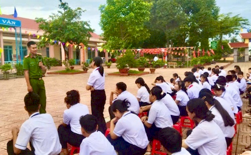 Công tác tuyên truyền được tổ chức trực tiếp tại trường, kết hợp hỏi – đáp, sân khấu hóa các tình huống pháp luật, trình chiếu video minh họa và giao lưu với học sinh để tạo không khí sinh động, dễ hiểu. Cán bộ tuyên truyền trực tiếp giải đáp thắc mắc, hướng dẫn kỹ năng tham gia giao thông an toàn, kỹ năng phòng tránh tệ nạn xã hội và các hành vi vi phạm pháp luật. Đồng thời, Công an xã cũng hướng dẫn giáo viên, học sinh truy cập các trang thông tin chính thống của ngành Công an để cập nhật kiến thức pháp luật, phòng tránh các thủ đoạn lừa đảo, vi phạm pháp luật trên không gian mạng.