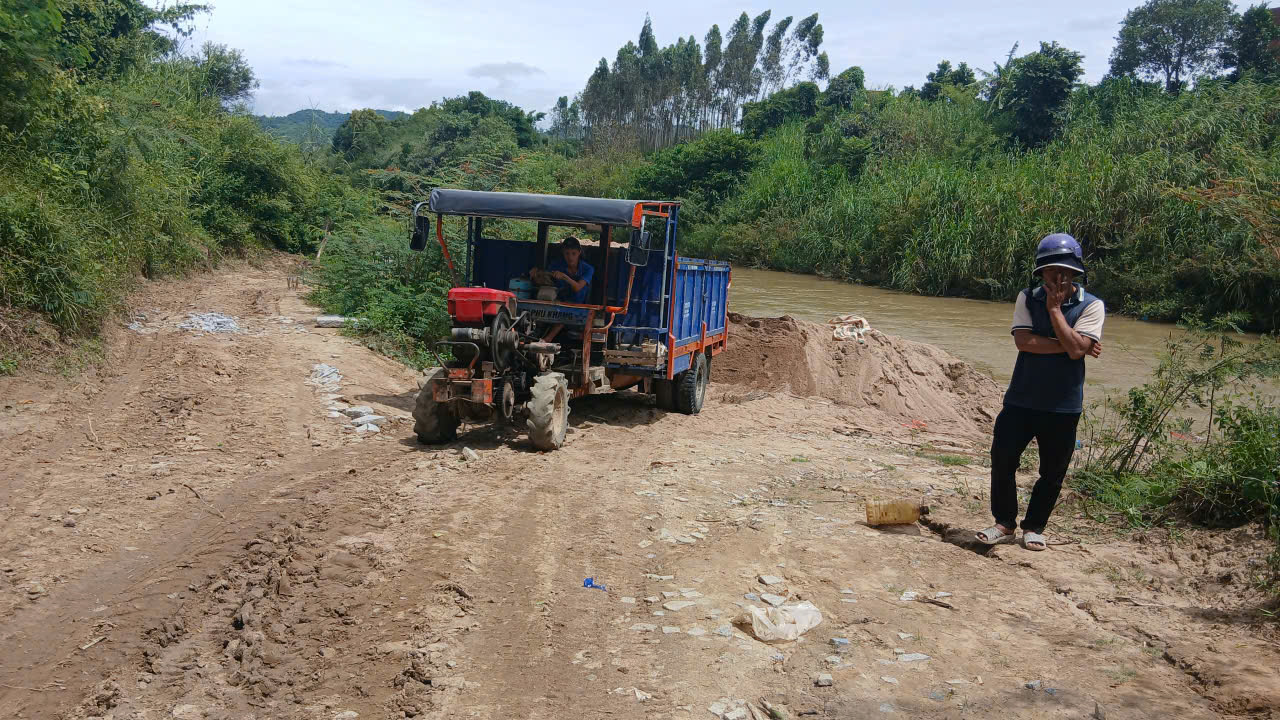 Các đối tượng dùng xe máy cày để vận chuyển cát đã khai thác từ trước