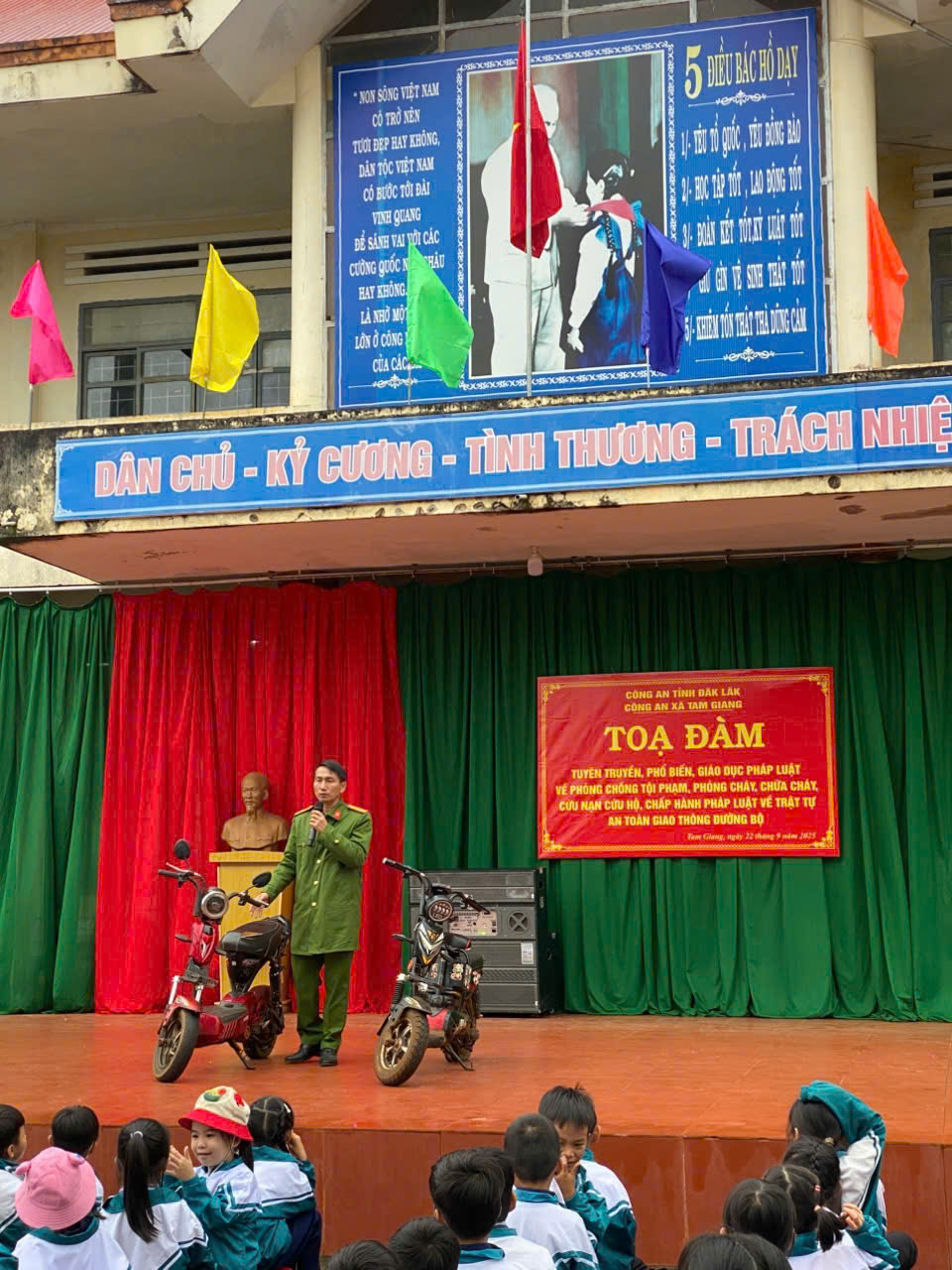 Các buổi tuyên truyền được tổ chức tại Trường TH&THCS Nguyễn Trãi, Trường THCS Hoàng Văn Thụ, Trường THCS Trần Hưng Đạo và Trường THPT Tôn Đức Thắng, thu hút 180 giáo viên và 2.965 học sinh tham gia. Nội dung trọng tâm của các buổi tuyên truyền là phổ biến các quy định pháp luật về trật tự, an toàn giao thông, đặc biệt liên quan đến việc sử dụng xe đạp điện, xe máy điện trong lứa tuổi học sinh. Cán bộ Công an xã đã phân tích cụ thể những quy định pháp luật như: