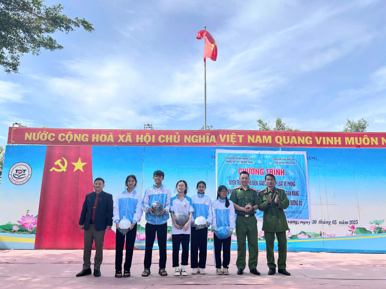 Bên cạnh tuyên truyền, lực lượng Công an xã còn chiếu hình ảnh, clip minh họa về các vụ tai nạn giao thông do học sinh gây ra, giúp các em nhận thức rõ hơn hậu quả của hành vi vi phạm.Nhiều học sinh đã mạnh dạn trao đổi, đặt câu hỏi và cam kết chấp hành nghiêm chỉnh các quy định của pháp luật khi tham gia giao thông. Tại các buổi tuyên truyền, lực lượng Công an xã cũng đã tổ chức ký cam kết đối với 3.145 trường hợp, phát 2.750 tờ rơi tuyên truyền và tặng 80 mũ bảo hiểm cho học sinh.