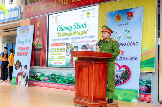 Sáng ngày 30/8/2025, Phòng Cảnh sát QLHC về TTXH phối hợp với các nhà hảo tâm, chính quyền và Công an xã Ea Súp tổ chức Chương trình “Vì đàn em thân yêu”, trao tình cảm, gửi tận tay 350 suất quà (mỗi suất gồm cặp sách, giày sandal, vở, dụng cụ học tập, sữa, bánh kẹo và 50.000 đồng tiền mặt) và 10 xe đạp trị giá hơn 100 triệu đồng cho các em học sinh có hoàn cảnh khó khăn tại Trường Tiểu học Cư M’Lan (điểm trường chính và phân hiệu thôn Bình Lợi). Đây là những món quà vô cùng thiết thực, tiếp thêm động lực để các em vững bước đến trường, nỗ lực học tập, nuôi dưỡng ước mơ.