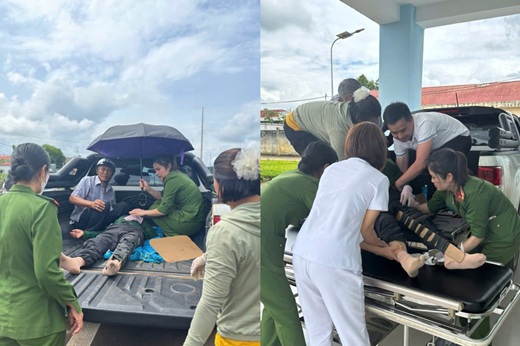 Không chỉ mang những phần quà nghĩa tình đến với học sinh và hộ nghèo, người dân có hoàn cảnh khó khăn tại xã biên giới, trên đường đi tổ công tác Phòng Cảnh sát QLHC về TTXH còn kịp thời phát hiện một người dân do buồn ngủ khi lái xe đã lao xuống mương, bị gãy chân tại xã Ea Wer, tỉnh Đắk Lắk. Tổ công tác đã nhanh chóng dừng xe, phối hợp cùng nhân viên y tế sơ cứu, nẹp cố định tại chỗ và đưa nạn nhân đến Trung tâm y tế Buôn Đôn cấp cứu kịp thời.