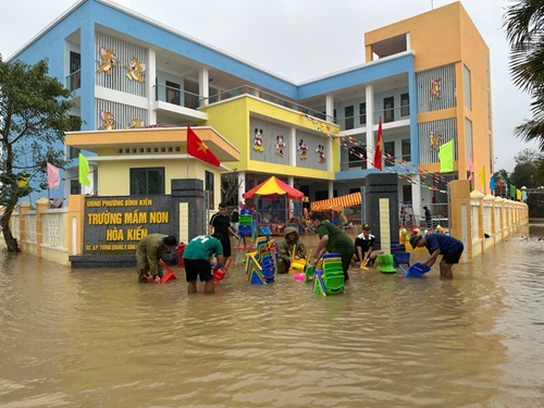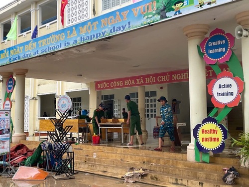 Bên cạnh hoạt động cứu trợ, đơn vị còn huy động cán bộ, chiến sĩ tham gia hỗ trợ dọn dẹp vệ sinh tại một số trường mầm non và tiểu học sau khi nước rút, góp phần giúp các cơ sở giáo dục sớm ổn định lại hoạt động.