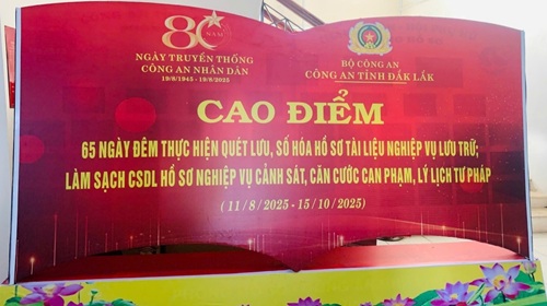 Trong không khí cả nước thi đua lập thành tích chào mừng 80 năm Cách mạng Tháng Tám thành công và 80 năm Quốc khánh 2/9, Phòng Hồ sơ nghiệp vụ Công an tỉnh Đắk Lắk đã ra quân mở đợt cao điểm 65 ngày đêm (từ 11/8 đến 15/10/2025) thực hiện quét lưu, số hóa hồ sơ tài liệu phục vụ lưu trữ; làm sạch cơ sở dữ liệu hồ sơ nghiệp vụ cảnh sát, căn cước can phạm, lý lịch tư pháp. Đây là một trong những nhiệm vụ trọng tâm, khẳng định bản lĩnh, trí tuệ và tinh thần trách nhiệm cao của cán bộ, chiến sĩ đơn vị trong sự nghiệp bảo đảm an ninh trật tự.