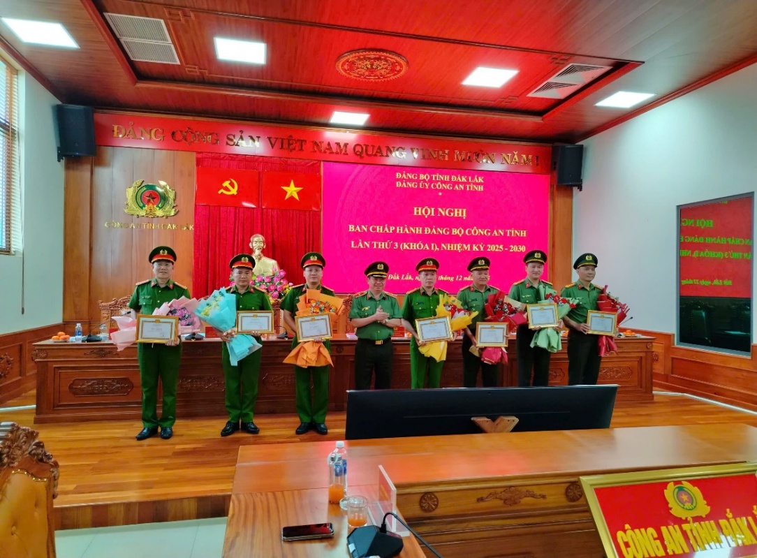 Nhân dịp này, Ban Thường vụ Đảng ủy Công an tỉnh tặng giấy khen 07 tổ chức cơ sở đảng “Hoàn thành xuất sắc nhiệm vụ” năm 2025.