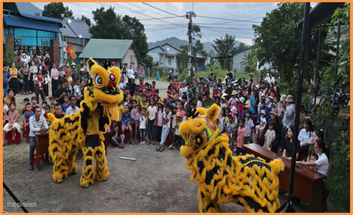 Không chỉ dừng lại ở việc tặng quà, các cán bộ, chiến sĩ còn tổ chức nhiều trò chơi dân gian, giao lưu văn nghệ, múa lân, thắp sáng đèn ông sao, tạo nên một đêm hội trăng rằm đầy màu sắc, để lại ấn tượng khó quên cho các em và bà con nhân dân. Qua đó, tình cảm quân – dân càng thêm gắn bó, thắt chặt.