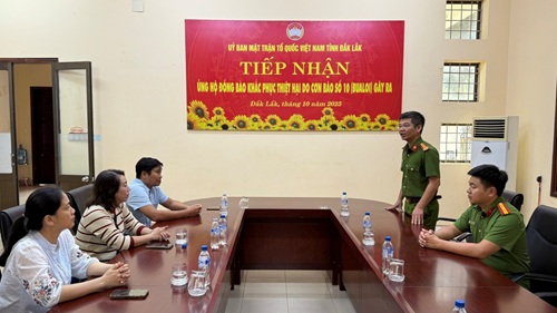 Hưởng ứng lời kêu gọi của Ủy ban Trung ương Mặt trận Tổ quốc Việt Nam về việc quyên góp, ủng hộ đồng bào các tỉnh, thành phố bị thiệt hại do thiên tai, bão lũ, sáng ngày 21/10/2025, tại trụ sở Ủy ban Mặt trận Tổ quốc Việt Nam tỉnh Đắk Lắk, Cơ quan Cảnh sát điều tra Công an tỉnh Đắk Lắk đã tổ chức trao tặng số tiền 89,4 triệu đồng nhằm hỗ trợ người dân tại các địa phương chịu ảnh hưởng nặng nề của mưa bão.