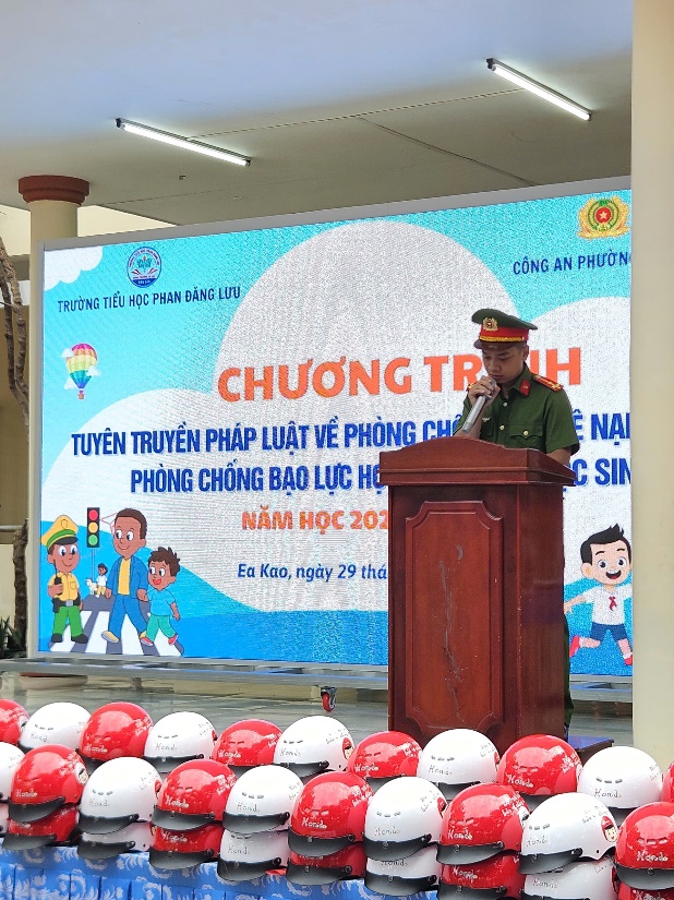 Trong hai ngày 29/9 và 06/10/2025, Công an phường Ea Kao phối hợp với Ban Giám hiệu Trường Tiểu học Phan Đăng Lưu và Trường Tiểu học La Văn Cầu tổ chức 02 buổi tuyên truyền chuyên đề về an toàn giao thông, phòng chống đuối nước, phòng cháy chữa cháy và phòng chống bạo lực học đường.