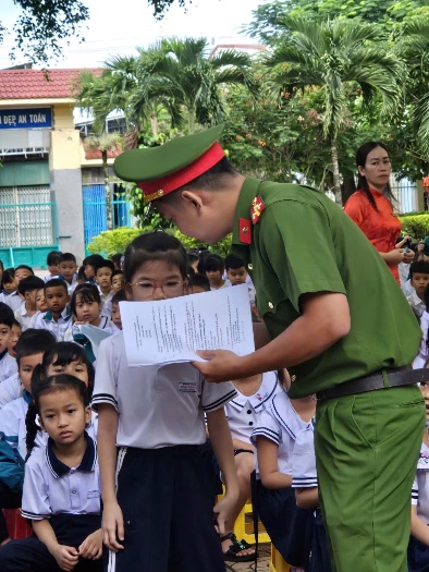 Các buổi tuyên truyền được thiết kế sinh động, kết hợp hình ảnh, tiểu phẩm, trò chơi hỏi – đáp và tình huống minh họa, giúp gần 1.200 học sinh dễ hiểu, dễ nhớ và biết cách vận dụng kiến thức trong cuộc sống hằng ngày. Cán bộ Công an hướng dẫn học sinh các kỹ năng cơ bản như: đi bộ, đi xe đạp an toàn, đội mũ bảo hiểm đúng quy cách, ứng xử văn minh trong trường học, kỹ năng tự bảo vệ bản thân và phòng tránh đuối nước.