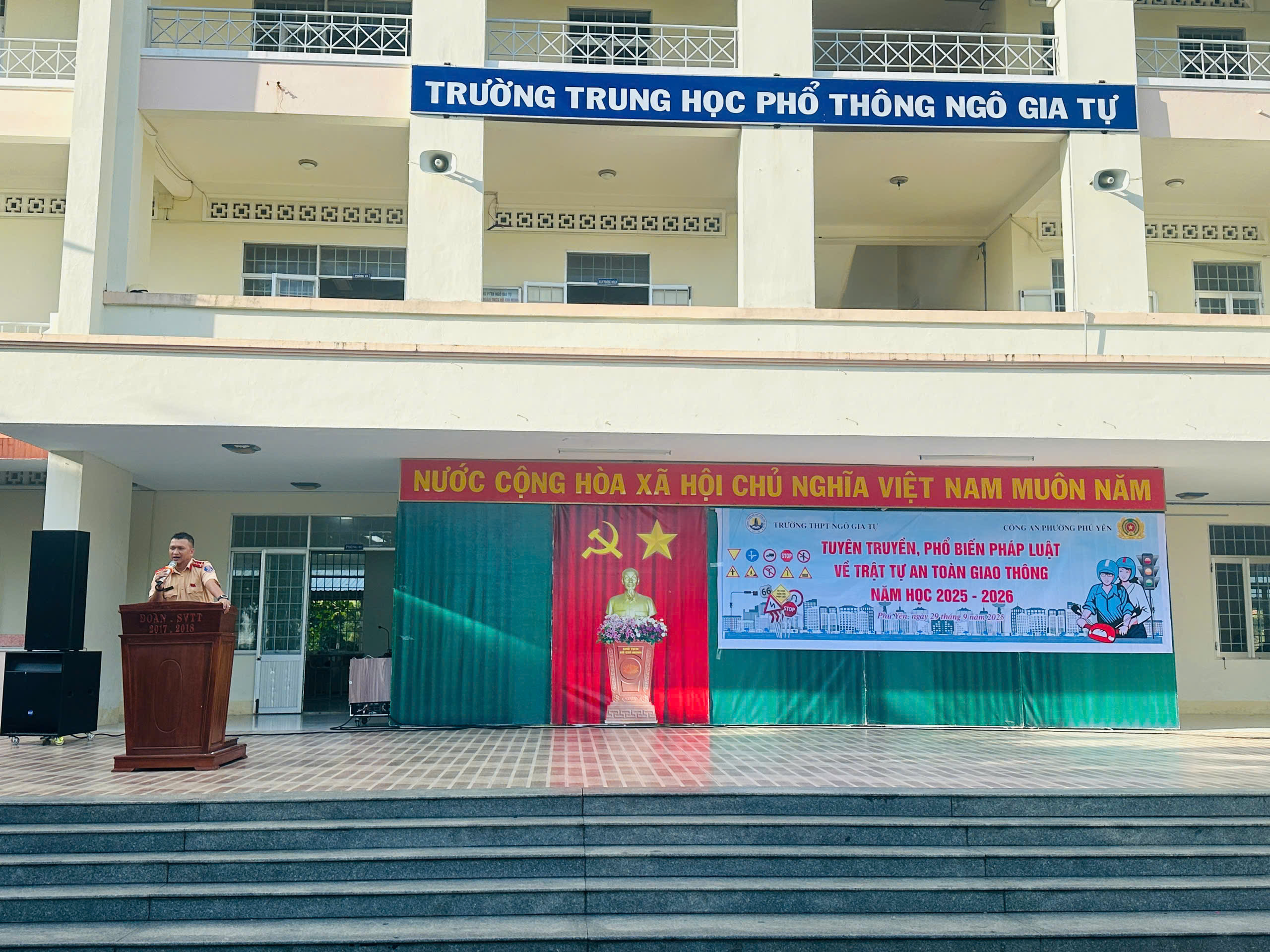 Nhằm nâng cao nhận thức, kỹ năng tự bảo vệ cho học sinh và xây dựng môi trường học đường an toàn, thân thiện, ngày 29/9/2025, Công an phường Phú Yên phối hợp với Phòng Cảnh sát giao thông Công an tỉnh tổ chức buổi tuyên truyền về phòng chống ma túy, bạo lực học đường, phòng cháy chữa cháy và trật tự an toàn giao thông tại Trường THPT Ngô Gia Tự.