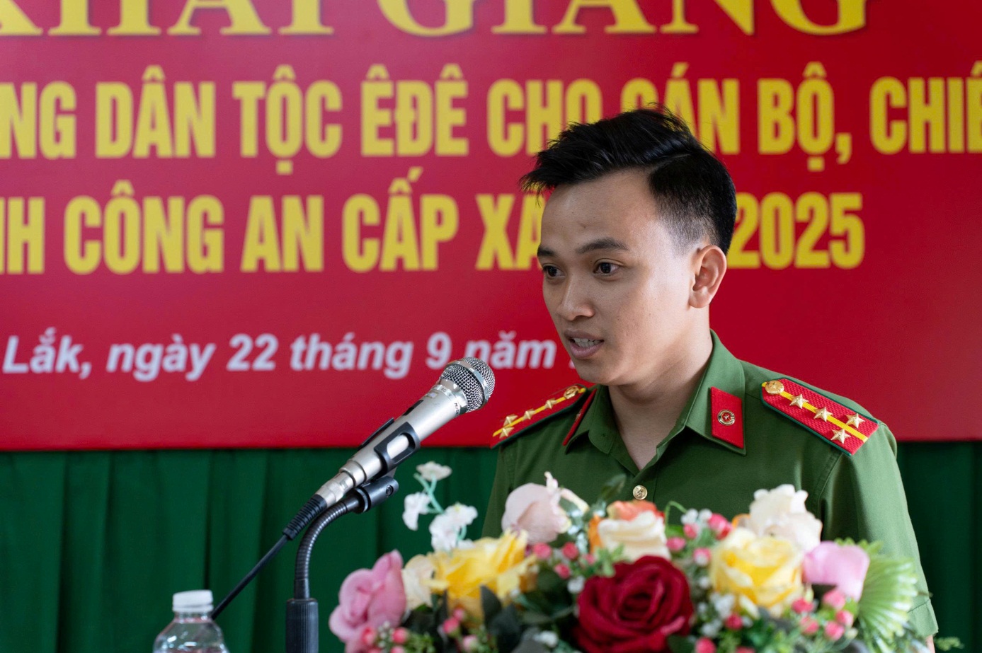 Phát biểu tại buổi Lễ, đồng chí Đại tá Trần Quang Hiếu, Phó Bí thư Đảng ủy, Phó Giám đốc Công an tỉnh nhấn mạnh: Việc mở lớp bồi dưỡng tiếng dân tộc Ê Đê có ý nghĩa rất lớn, không chỉ tạo điều kiện thuận lợi cho cán bộ, chiến sĩ trong công tác tuyên truyền, phổ biến các chủ trương, chính sách của Đảng, pháp luật của Nhà nước đến với nhân dân. Đặc biệt còn góp phần quan trọng trong công tác vận động đồng bào dân tộc thiểu số tham gia giữ gìn an ninh trật tự, phát huy vai trò của nhân dân trong đấu tranh, phòng chống tội phạm, cùng nhân dân trên địa bàn phát triển kinh tế, văn hóa, xã hội.