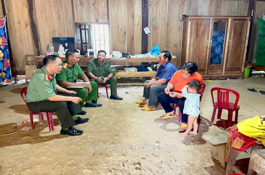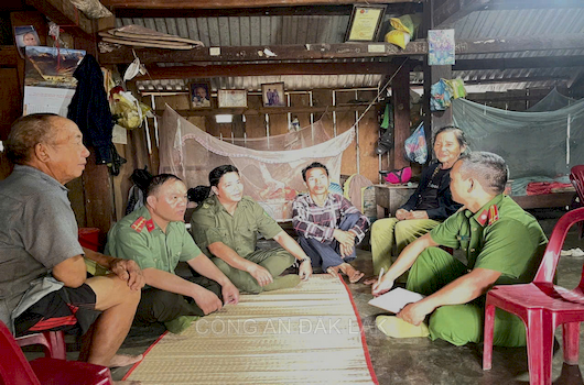 Cán bộ Công an xã Ea Kiết đến tận từng nếp nhà, lắng nghe tâm tư, nguyện vọng của bà con
