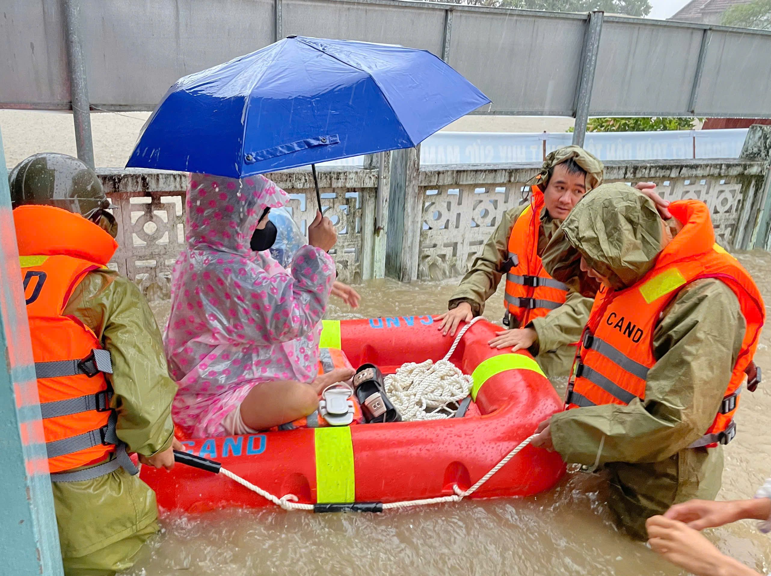 Ngay sau khi tiếp nhận thông tin, lực lượng Công an xã đã khẩn trương cử 06 cán bộ công an xã sử dụng xuồng hơi chuyên dụng, mang theo áo phao, dây cứu hộ và các trang thiết bị cần thiết để lên đường ứng cứu. Bất chấp thời tiết xấu, mưa lớn liên tục và nước lũ chảy xiết, 06 cán bộ đã nhanh chóng tiếp cận được ngôi nhà bị cô lập, kịp thời hỗ trợ, đưa sản phụ Lan lên xuồng hơi và di chuyển đến trạm xá xã.