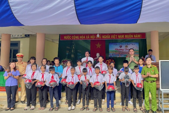 Nhằm động viên, khích lệ tinh thần học tập của học sinh có hoàn cảnh khó khăn, Ban Tổ chức đã trao tặng 30 mũ bảo hiểm đạt chuẩn cho các em. Món quà tuy nhỏ nhưng mang ý nghĩa thiết thực, góp phần lan tỏa thông điệp “Đội mũ cho con, trọn tình cha mẹ” và nâng cao ý thức chấp hành pháp luật về ATGT trong gia đình.