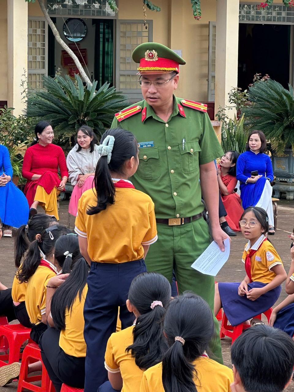 Buổi tuyên truyền có sự tham gia của khoảng 600 cán bộ, giáo viên, công nhân viên và toàn thể các em học sinh nhà trường. Các nội dung được truyền đạt bám sát quy định pháp luật, gắn với thực tiễn đời sống và được xây dựng theo phương châm 3 dễ “dễ nhớ, dễ nghe, dễ làm theo”, tập trung vào các quy định cơ bản về trật tự an toàn giao thông và kỹ năng phòng tránh tai nạn khi tham gia giao thông. Nhờ cách truyền đạt trực quan, sinh động, kết hợp trò chơi và câu hỏi tương tác, Trung tá Hoàng Văn Lương – Tổ trưởng Tổ CSTT, Công an xã Krông Búk đã tạo không khí sôi nổi, hào hứng, giúp học sinh dễ tiếp thu và ghi nhớ kiến thức.