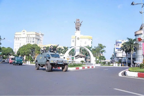 Đoàn diễu hành của Công an phường Buôn Ma Thuột trong đợt ra quân cao điểm