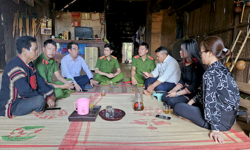 Công an xã Krông Năng phối hợp với các Ban, ngành, đoàn thể đến trực tiếp từng hộ gia đình để tuyên truyền, hướng dẫn bà con trong công cuộc chuyển đổi số