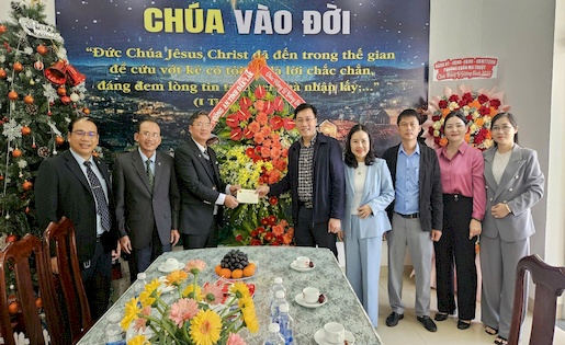 (Ảnh: Lãnh đạo Công an tỉnh chúc mừng lễ Giáng sinh tại Tòa Giám mục Ban Mê Thuột)