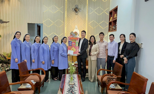(Ảnh: Lãnh đạo Phòng An ninh nội địa chúc mừng lễ Giáng sinh tại Dòng Nữ Vương Hòa Bình)