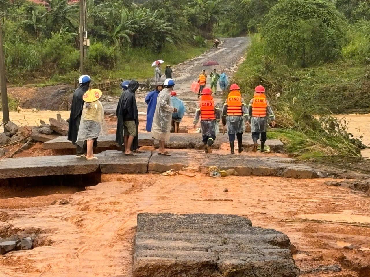 Tại thôn Yang Hanh, xã Yang Mao, lực lượng Cảnh sát PCCC và CNCH đã có mặt kịp thời, dầm mình trong mưa lũ để tiếp cận các khu vực bị chia cắt. Đến 19 giờ ngày 18/11, với sự phối hợp chặt chẽ của chính quyền địa phương và lực lượng Công an cơ sở, cán bộ, chiến sĩ đã đưa 180 người ra khỏi vùng nguy hiểm, đồng thời vận chuyển lương thực, nhu yếu phẩm hỗ trợ 26 hộ dân đang bị cô lập.