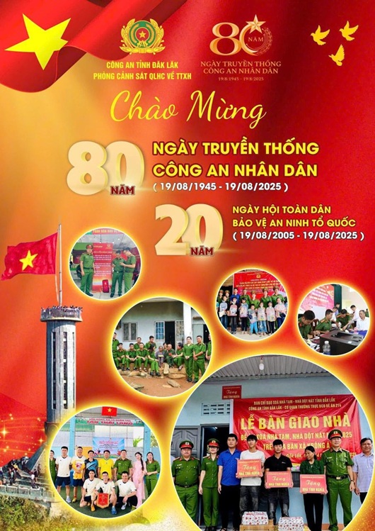 Trong niềm tự hào kỷ niệm 80 năm thành lập Công an nhân dân Việt Nam, lực lượng Phòng Cảnh sát QLHC về TTXH Công an tỉnh Đắk Lắk càng nhận thức sâu sắc hơn trách nhiệm và sứ mệnh vẻ vang của mình. Truyền thống anh hùng đã trao cho hôm nay niềm tin, nghị lực và động lực để vững bước đi tới. Với tinh thần đoàn kết, trí tuệ, đổi mới và khát vọng cống hiến, lực lượng quyết tâm hoàn thành xuất sắc mọi nhiệm vụ được giao, mãi mãi xứng đáng là lá chắn thép bảo vệ an ninh Tổ quốc, bảo vệ bình yên cuộc sống, góp phần xây dựng quê hương Đắk Lắk ngày càng phát triển phồn vinh, hạnh phúc, đồng hành cùng đất nước trên con đường hội nhập và phát triển bền vững./.