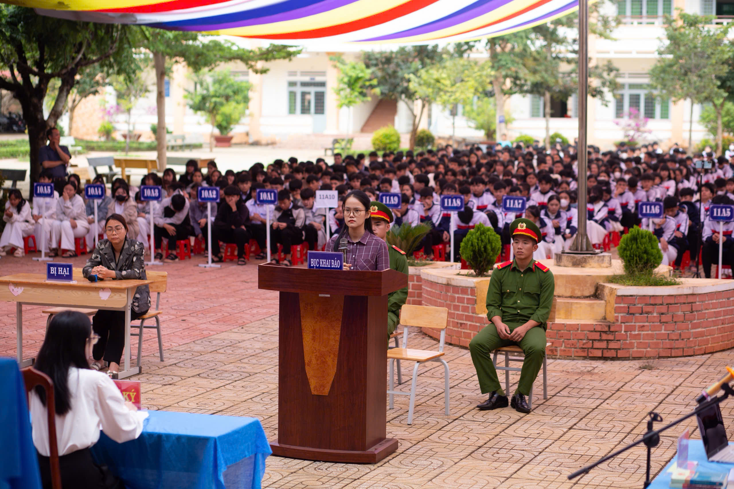 Ngày 13/10/2025, Tổ Cảnh sát giao thông địa bàn Buôn Hồ thuộc Phòng Cảnh sát giao thông Công an tỉnh Đắk Lắk đã phối hợp với Viện kiểm sát nhân dân khu vực 8 và Tòa án nhân dân khu vực 8 tổ chức phiên tòa giả định tại Trường Trung học phổ thông Hai Bà Trưng. Đây là hoạt động thiết thực nhằm đa dạng hóa công tác tuyên truyền, phổ biến, giáo dục pháp luật cho học sinh,