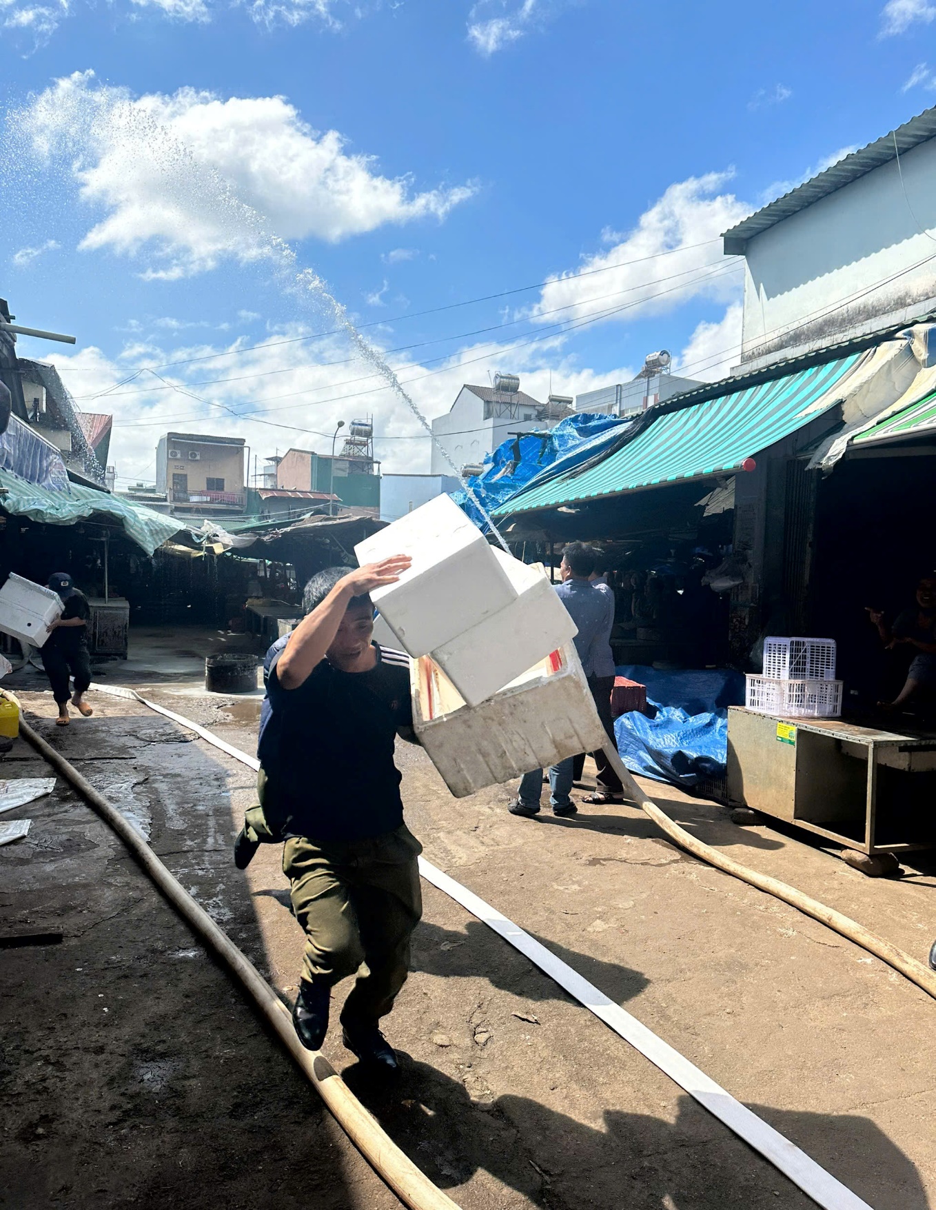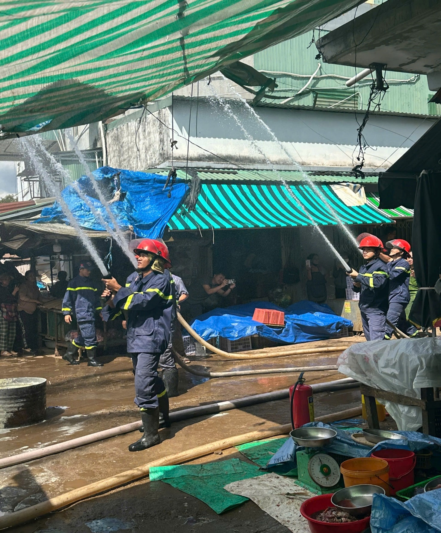 Ngay khi nhận được tín hiệu báo cháy, lực lượng PCCC cơ sở, tiểu thương đã triển khai các biện pháp xử lý ban đầu, đồng thời lực lượng Công an xã Quảng Phú và Cảnh sát PCCC và CNCH nhanh chóng điều động phương tiện, cán bộ chiến sĩ đến hiện trường phối hợp tổ chức chữa cháy, cứu người, cứu tài sản và ngăn cháy lan.