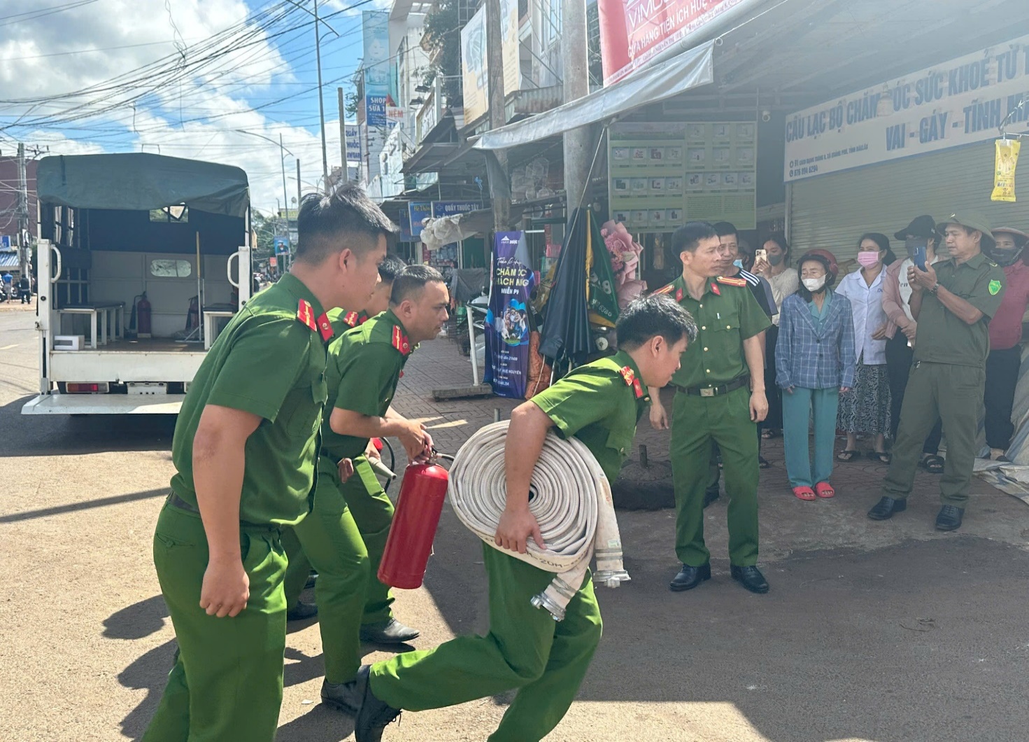 Nhằm nâng cao khả năng ứng phó với các tình huống cháy, nổ tại khu vực chợ, nơi tập trung đông người và nhiều hàng hóa dễ cháy, trong ngày 15/11/2025, Phòng Cảnh sát Phòng cháy, chữa cháy và Cứu nạn, cứu hộ (PCCC&CNCH) Công an tỉnh Đắk Lắk đã phối hợp với Ủy ban nhân dân xã Quảng Phú, Công an xã Quảng Phú và Công ty TNHH xây dựng & kinh doanh chợ Thành Phát tổ chức thực tập phương án chữa cháy và cứu nạn, cứu hộ tại chợ Quảng Phú.