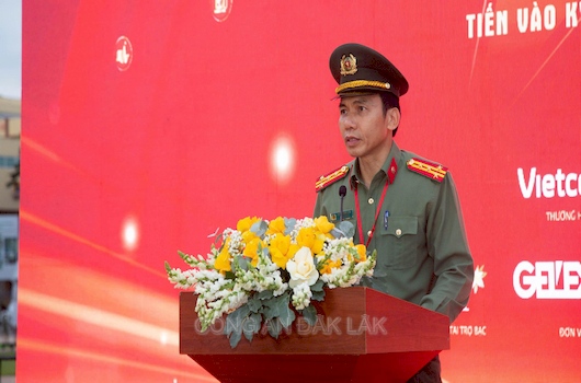 Đồng chí Đại tá Trần Quang Hiếu, Phó Giám đốc Công an tỉnh Đắk Lắk phát biểu chỉ đạo tại Lễ phát động