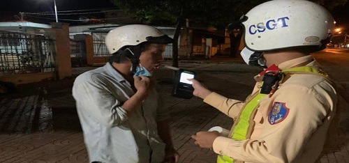 Lực lượng CSGTTT tiến hành kiểm tra nồng độ cồn