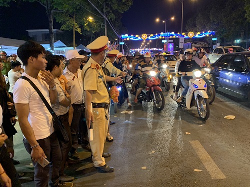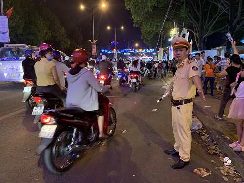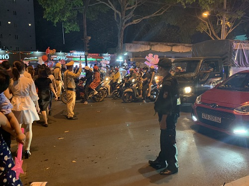 Lực lượng CSGT ngày đêm điều tiết giao thông trên các tuyến đường trọng điểm