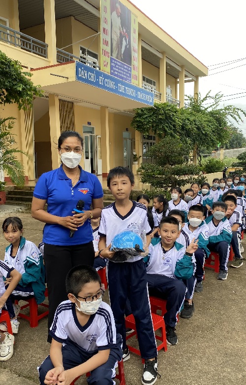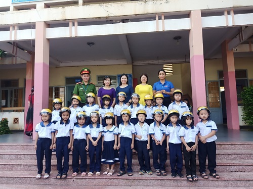 Tặng mũ bảo hiểm cho các em học sinh cấp 1 trường Lê Ngọc Hân