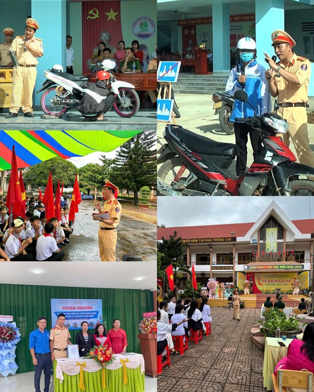 Đặc biệt, trong ngày khai giảng năm học mới 2024 - 2025, lực lượng Cảnh sát giao thông Công an tỉnh đã bố trí cán bộ đến gần 50 điểm trường trên địa bàn tỉnh để phát tờ rơi, trực tiếp tuyên truyền, giáo dục, phổ biến pháp luật về giao thông đường bộ, nâng cao ý thức, kỹ năng tham gia giao thông an toàn cho hơn 20.000 cán bộ, giáo viên, công nhân viên, phụ huynh và học sinh các trường; tặng hơn 500 phần quà cho các em học sinh; tổ chức cho các trường học ký cam kết chấp hành quy định của pháp luật về TTATGT,…