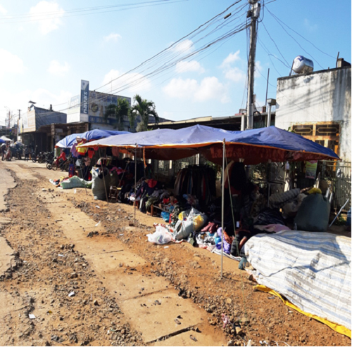 Tình trạng người dân bày bán hàng trên vỉa hè dành cho người đi bộ diễn ra khá phổ biến gây ảnh hưởng tới an toàn giao thông trên tuyến quốc lộ 27 (khu vực chợ Trung Hòa, huyện Cư Kuin)