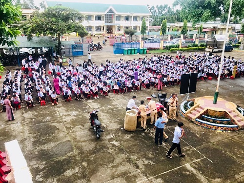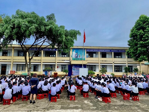 Buổi tuyên truyền thu hút rất đông học sinh và cán bộ, giáo viên tham dự