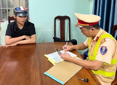 Lực lượng CSGT tiến hành lập biên bản VPHC