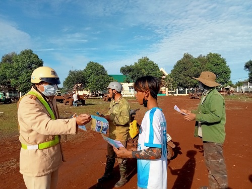Trong thời gian hai ngày, từ ngày 19/12 đến ngày 20/12, lực lượng Cảnh sát giao thông, trật tự Công an huyện đã phát 1.400 tờ rơi tuyên truyền luật giao thông và dán decal phản quang cho 1.000 chiếc xe công nông, máy kéo tại các thôn, buôn trên địa bàn xã Ea Sol, Ea Ral.