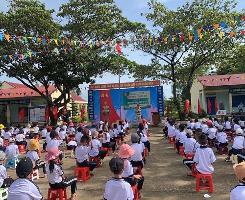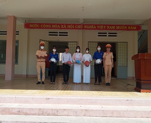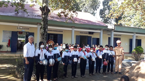 Tuyên truyền pháp luật về giao thông, tặng mũ bảo hiểm đạt chuẩn cho học sinh tại các trường học trên địa bàn