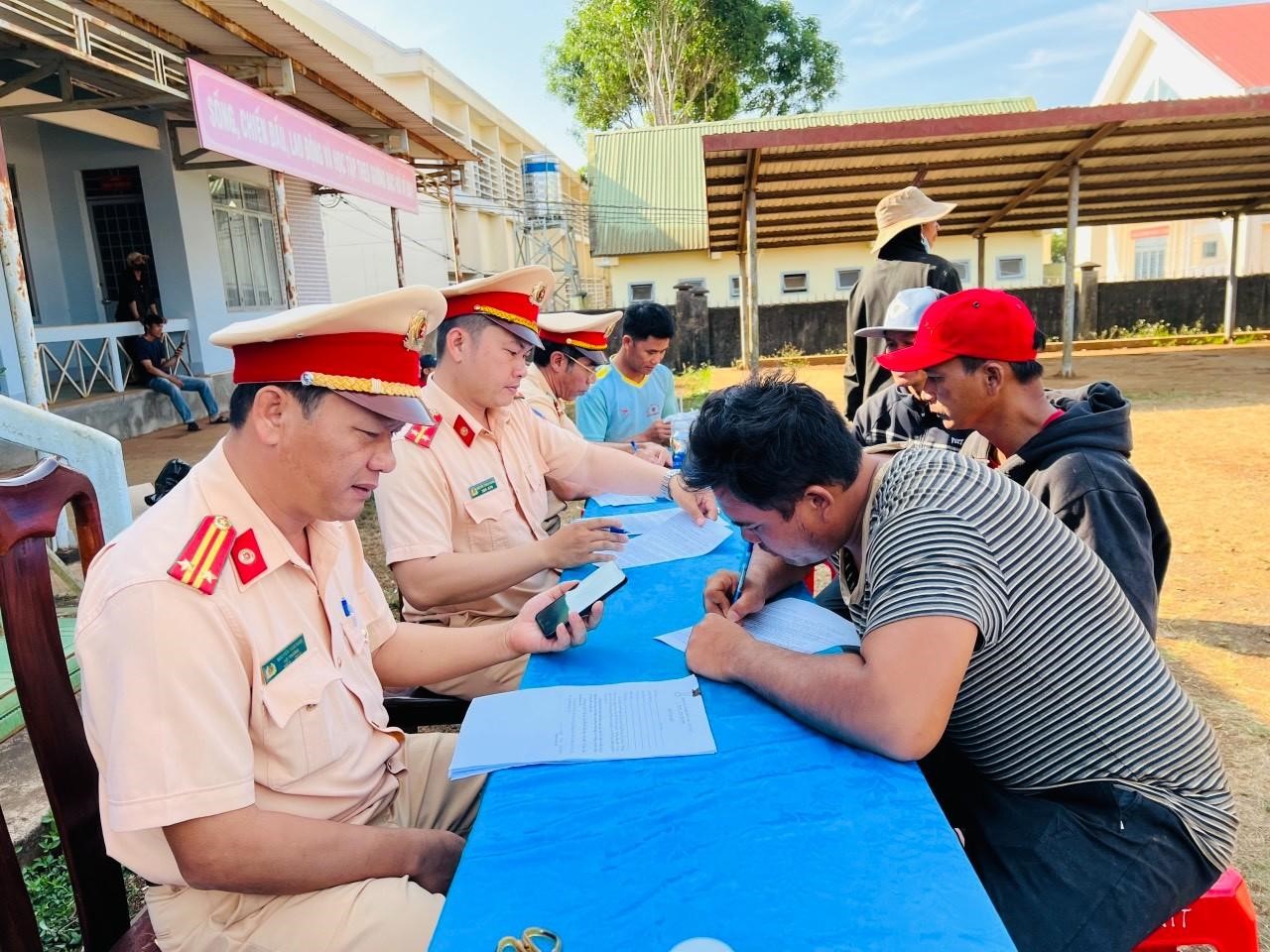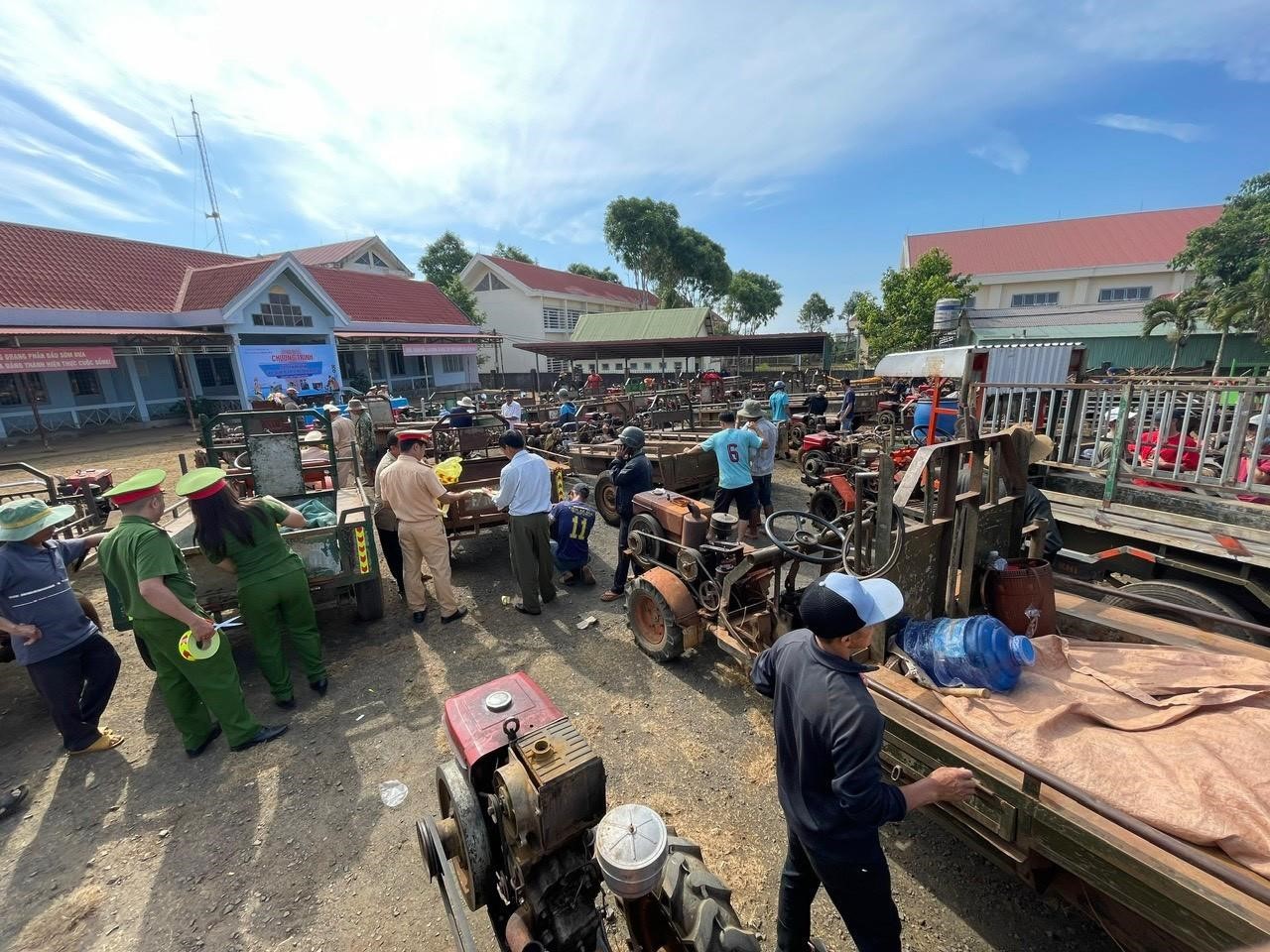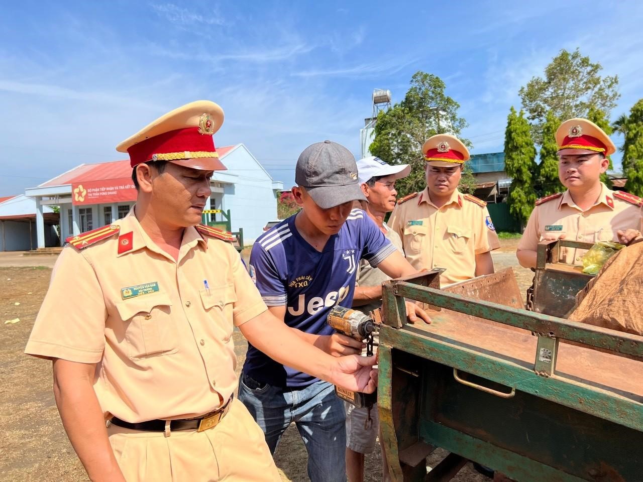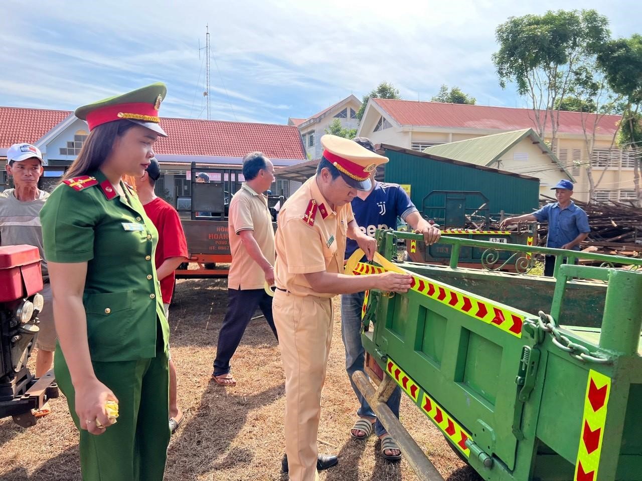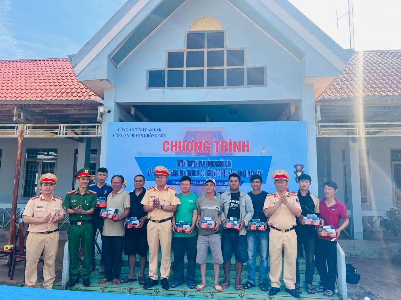 Trước tình hình đó, Công an huyện Krông Búk đã xây dựng kế hoạch số 20/KH-CAH-ĐCSGT,TT ngày 20/01/2024 về tuyên truyền, vận động nhân dân lắp đặt còi, gương chiếu hậu, đèn chiếu sáng, đèn tín hiệu cho xe máy cày, Đội cảnh sát giao thông đã tích cực thực hiện kế hoạch trên bằng nhiều phương pháp mang tính thực tế đem lại nhiều hiệu quả tích cực,cụ thể vào sáng 30/3 đội Cảnh sát giao thông Công an huyện Krông Búk phối hợp với Trạm cảnh sát giao thông - Phòng PC08, Công an thị trấn Pơng Drang tổ chức tuyên truyền, và vận động bà con nhân dân lắp thêm còi, gương chiếu hậu, hệ thống đèn chiếu sáng, đèn tín hiệu, dán decan phản quang cho hơn 100 xe máy cày cho bà con trên địa bàn thị trấn, song song công tác tuyên truyền cán bộ đội CSGT đã triển khai cho bà con tham gia ký cam kết chấp hành nghiêm các quy định pháp luật về giao thông đường bộ và các quy tắc tham gia giao thông.