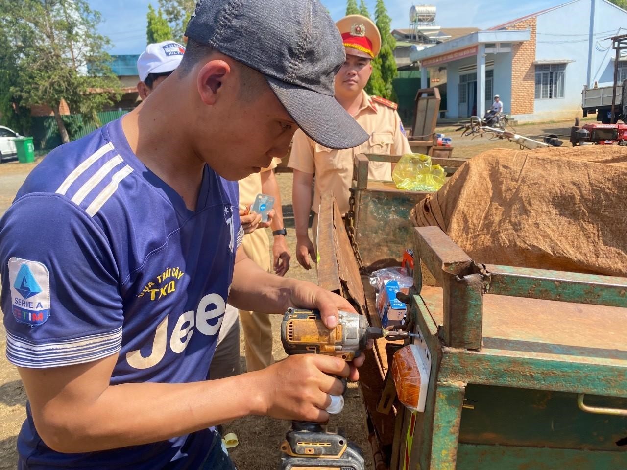 Công an huyện hỗ trợ người dân lắp thêm còi, gương chiếu hậu, hệ thống đèn chiếu sáng, đèn tín hiệu, dan DeCan phản Quang