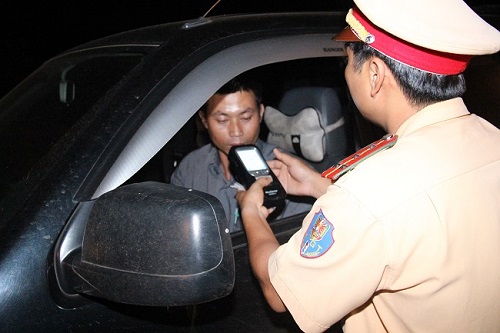 CSGT kiểm tra nồng độ cồn đối với người điều khiển phương tiện khi tham gia giao thông