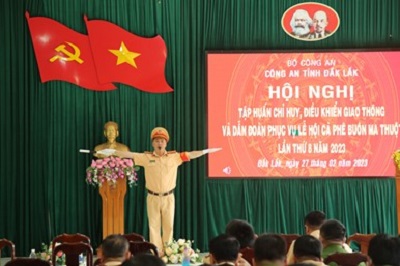 Thực hiện Kế hoạch về bảo đảm trật tự an toàn giao thông phục vụ Lễ hội cà phê Buôn Ma Thuột lần thứ 8 năm 2023, Công an tỉnh Đắk Lắk đã tổ chức tập huấn công tác chỉ huy, điều khiển giao thông và dẫn đoàn phục vụ Lễ hội cà phê Buôn Ma Thuột năm 2023.