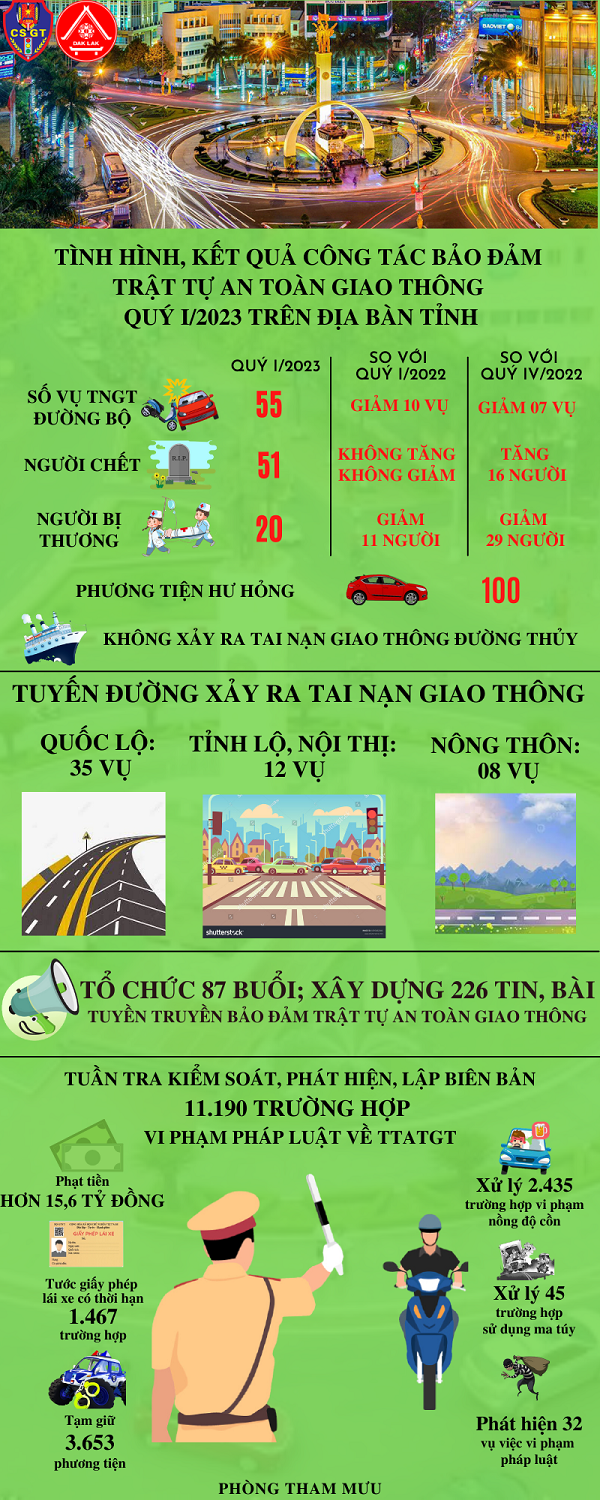 [Infographic]: Tình hình, kết quả công tác bảo đảm trật tự an toàn giao thông Quý I/2023 trên địa bàn tỉnh