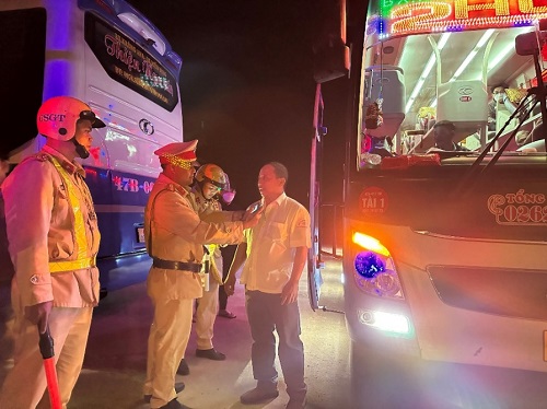 Thực hiện chỉ đạo của Cục Cảnh sát giao thông và Công an tỉnh về thực hiện chuyên đề kiểm soát vi phạm nồng độ cồn và ma túy trong cả năm 2023, lực lượng Cảnh sát giao thông Công an huyện chia thành nhiều tổ công tác tuần tra lưu động, cắm chốt điều tiết giao thông và tập trung kiểm tra, xử lý những xe khách, kiểm tra nồng độ cồn đối với lái xe; đồng thời tăng cường kiểm tra các lỗi vi phạm là nguyên nhân chính gây tai nạn giao thông như: Vi phạm tốc độ, quá tải trọng, cơi nới thành thùng, xe hết hạn đăng kiểm và sử dụng đăng kiểm giả…Đặc biệt là tiến hành kiểm tra nồng độ cồn đối với tất cả lái xe trước khi xuất bến.